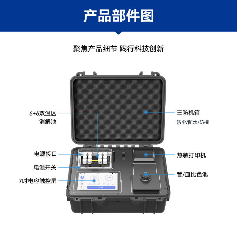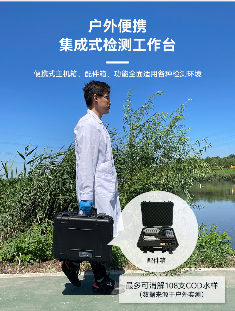 光源的持久耐用也是LH-C600的一大亮點(diǎn)。內(nèi)置8個可見光波長LED光源,壽命長、更穩(wěn)定且故障率更低,大幅降低了使用和維護(hù)成本。同時,戶外檢測便攜性也是該儀器的一大優(yōu)勢。采用主機(jī)箱+配件箱的形式,耗材、配件完備,戶外檢測方便快捷。大容量鋰電池更是確保了儀器在戶外無電源條件下連續(xù)工作8小時以上的能力,讓水質(zhì)檢測不再受地點(diǎn)和時間限制。