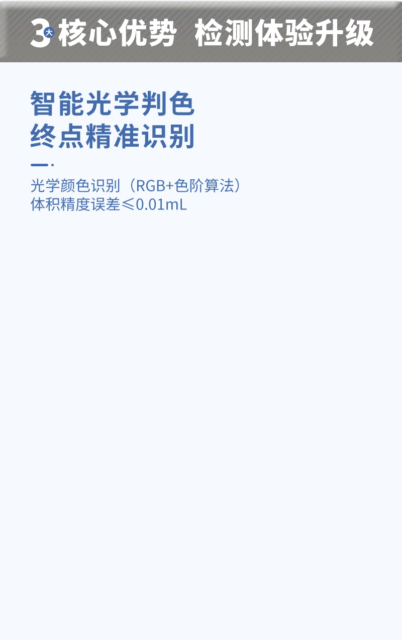 8、滴定劑精確至0.02mL/滴,體積定量誤差≤0.01mL,有效提升滴定精度;