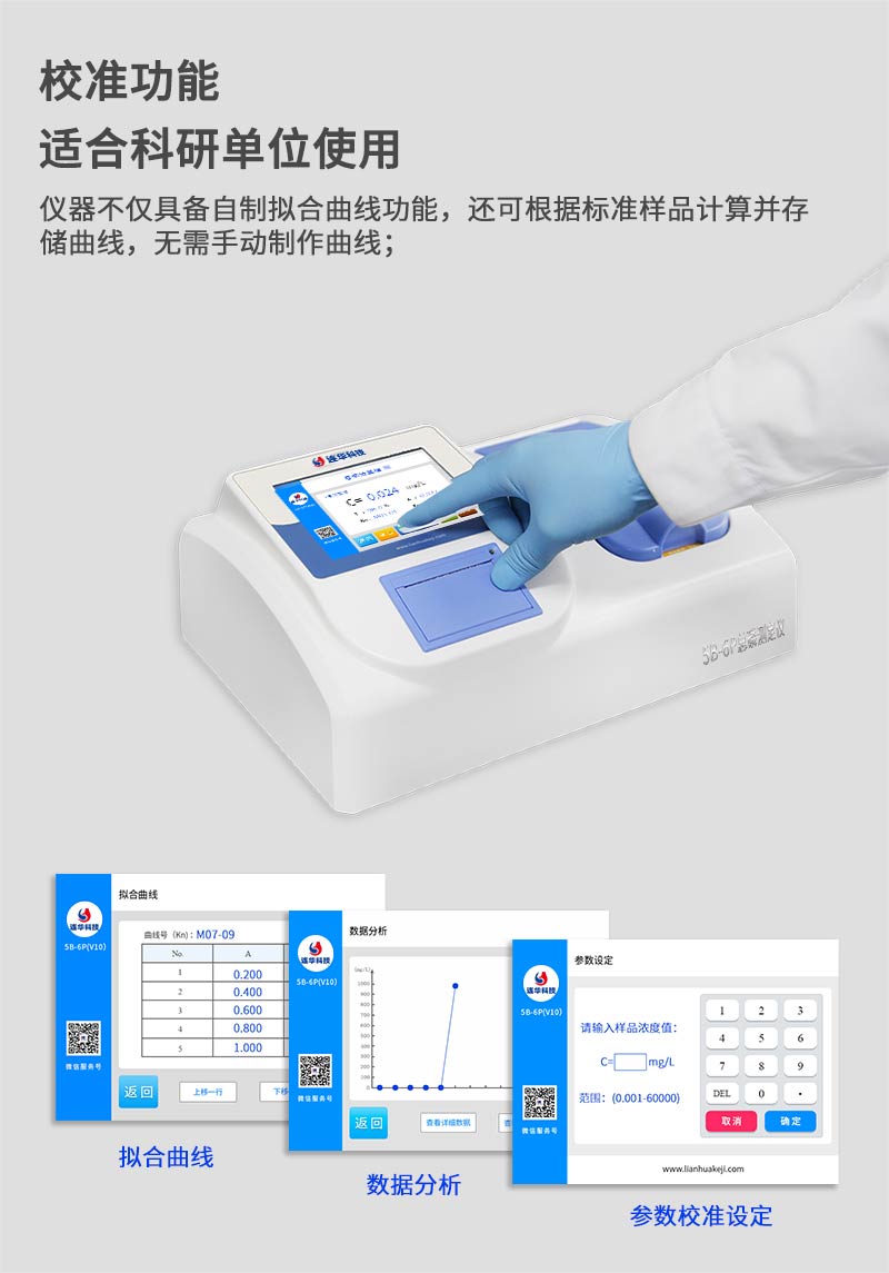 4、校準(zhǔn)功能:儀器自備校準(zhǔn)功能,可根據(jù)標(biāo)準(zhǔn)樣品計(jì)算并存儲(chǔ)曲線(xiàn),無(wú)需手動(dòng)制作曲線(xiàn);